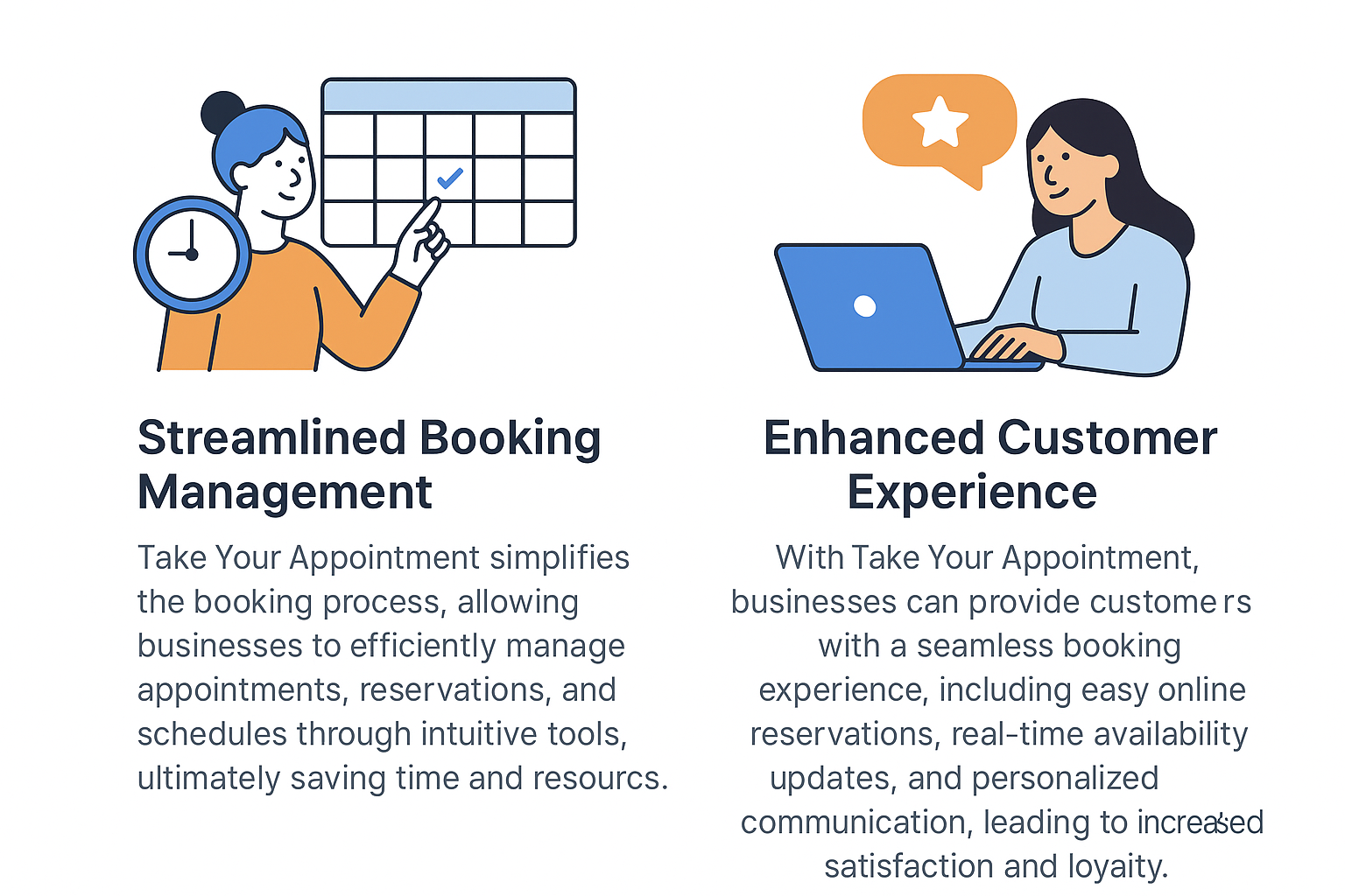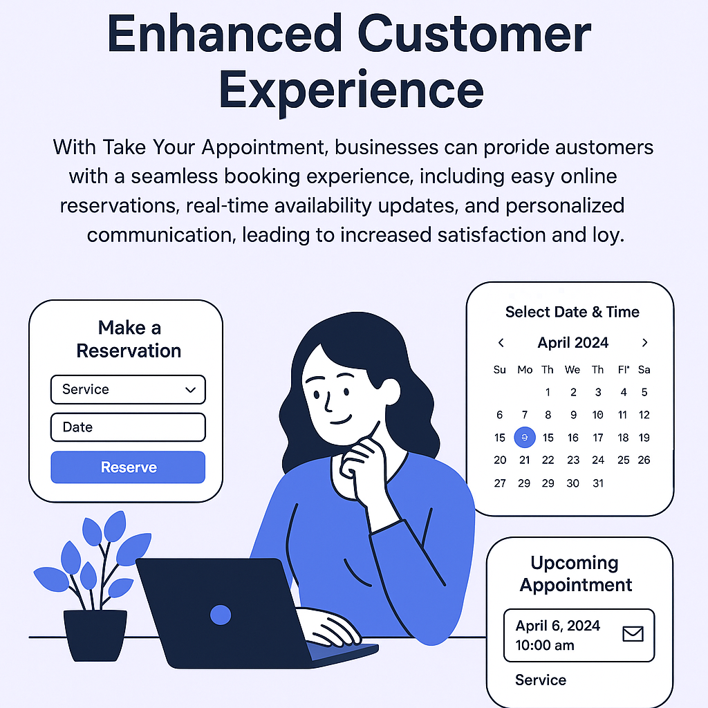 Take Your Appointment enables businesses to deliver a smooth and user-friendly booking journey. With features like real-time availability, simple online reservations, and automated personalized notifications, customers enjoy a professional experience that boosts trust, satisfaction, and long-term loyalty.