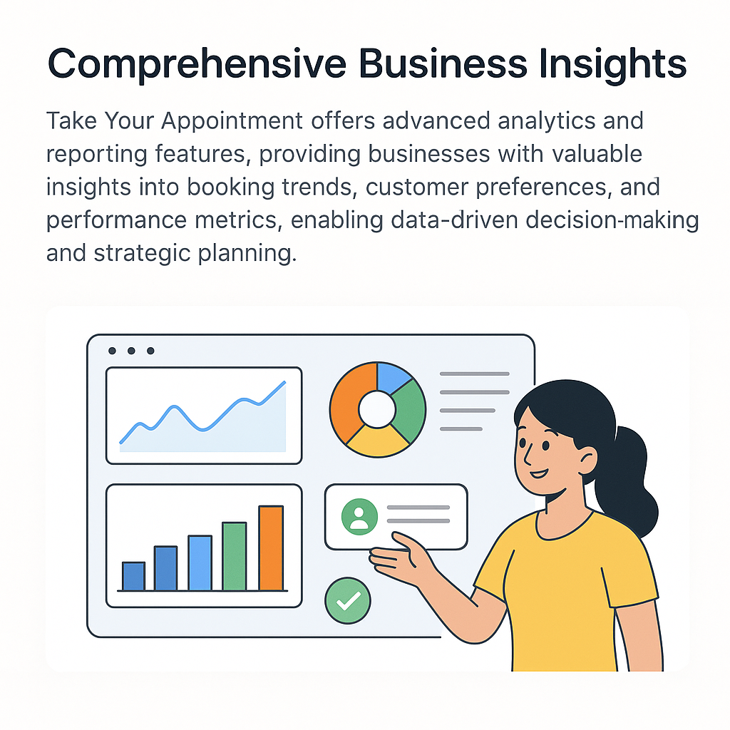 Take Your Appointment equips businesses with powerful analytics and detailed reports, offering clear insights into booking trends, customer behavior, and key performance indicators. These data-driven insights help optimize operations, improve customer engagement, and support smart, strategic growth decisions